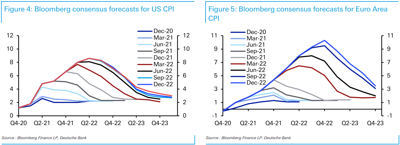 Khi đại dịch Covid-19 bùng phát vào năm 2020, các nhà hoạch định chính sách đã phản ứng theo hướng ngược lại với việc cắt giảm lãi suất nhanh chóng, mua tài sản quy mô lớn và hướng dẫn chính sách rất nới lỏng. Deutsche Bank lưu ý rằng các biện pháp này được thiết kế rõ ràng để tránh lặp lại kinh nghiệm sau năm 2008.