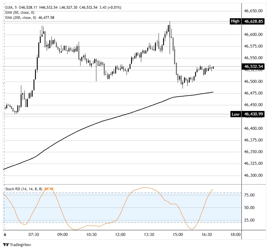 Chỉ số công nghiệp trung bình Dow Jones tăng nhẹ 90 điểm vào thứ Hai trong phiên giao dịch đầu tiên sau khi thị trường đóng cửa vào Thứ Sáu Tuần Thánh. Chỉ số này đã tiến gần mốc 46.600 trong phiên giao dịch đầu ngày trước khi giảm dần qua phiên giữa ngày, tìm được mức hỗ trợ gần 46.400 trên biểu đồ trong ngày. Chỉ số S&P 500 tăng 0,4% và Nasdaq Composite tăng 0,5%, kéo dài đà phục hồi tuần trước với mức tăng lần lượt là 3%, 3,4% và 4,4%. Phiên giao dịch thứ Hai là cơ hội đầu tiên để các nhà giao dịch tiêu hóa báo cáo Bảng lương phi nông nghiệp (NFP) tháng Ba vượt trội vào thứ Sáu, cho thấy nền kinh tế đã tạo thêm 178 nghìn việc làm so với kỳ vọng chỉ 60 nghìn.