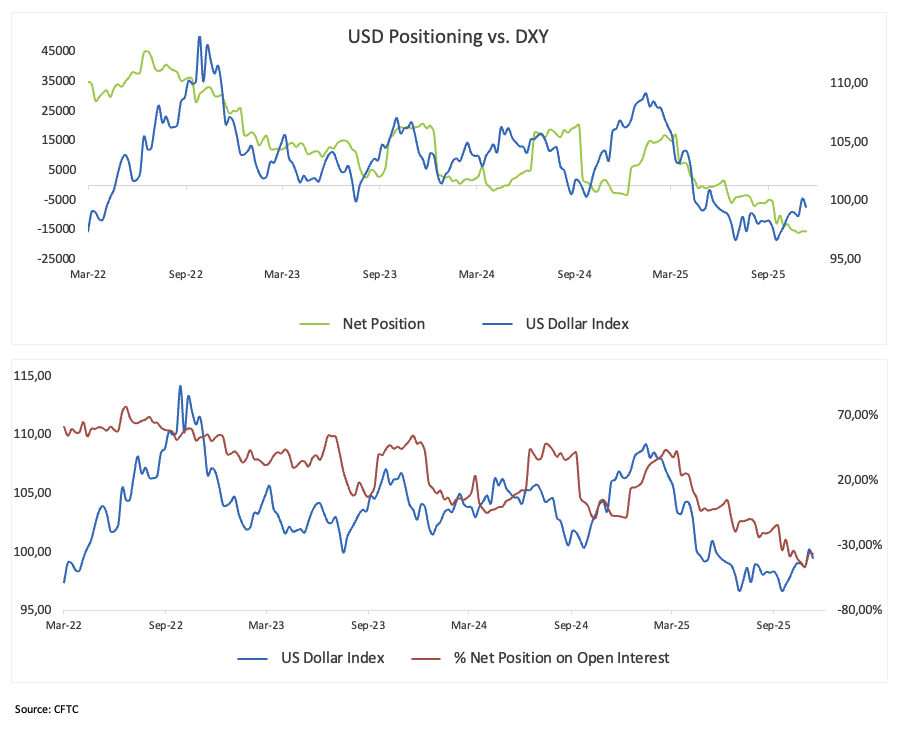 Định vị kể một câu chuyện thú vị hơn: Định vị đầu cơ đã chuyển động quyết liệt, với các vị thế bán ròng USD hiện đang ở mức cao nhất trong nhiều năm. Nói cách khác, một phần đáng kể của thị trường đã định vị cho sự yếu kém hơn nữa của đồng đô la. Điều này không làm vô hiệu hóa trường hợp giảm giá, nhưng nó thay đổi hồ sơ rủi ro. Khi định vị ngày càng một chiều, rào cản cho sự giảm giá bền vững của USD tăng lên, trong khi rủi ro về các đợt phục hồi ngắn hạn cũng gia tăng.