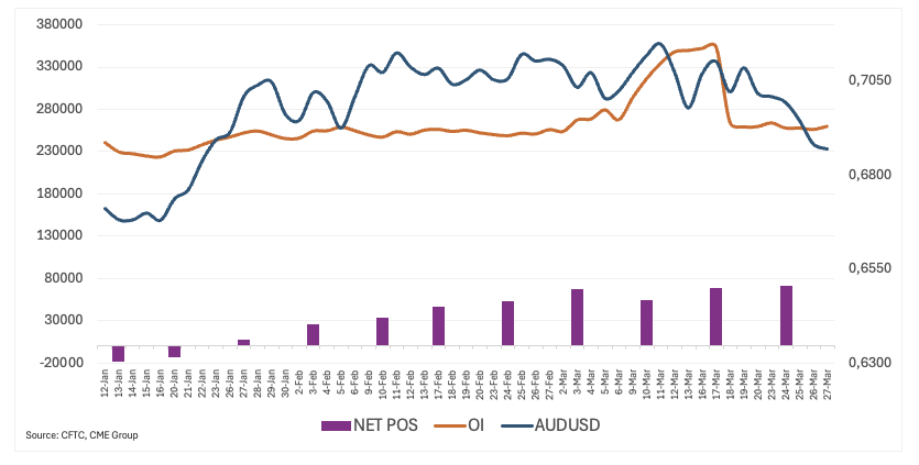 Định vị kể một câu chuyện hơi khác. Dữ liệu mới nhất từ Ủy ban Giao dịch Hàng hóa Tương lai (CFTC) cho thấy các vị thế mua ròng tiếp tục tăng, vượt trên 70.000 hợp đồng trong tuần kết thúc vào ngày 24 tháng 3.