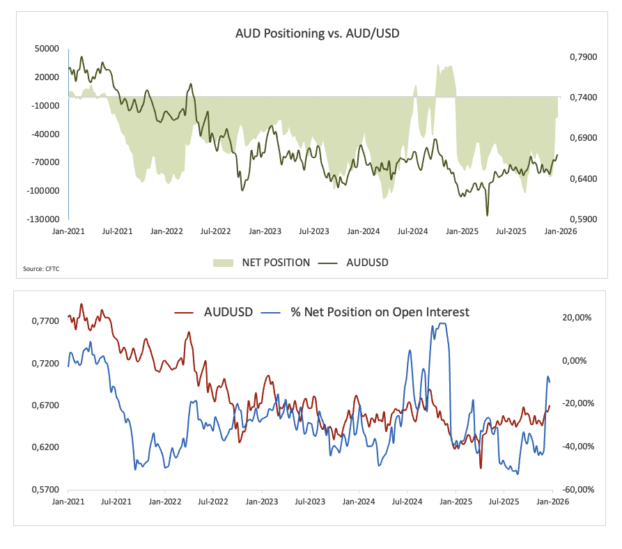 Dữ liệu của CFTC cho tuần kết thúc ngày 23 tháng 12 cho thấy các nhà đầu cơ tiếp tục giảm bớt vị thế bán khống AUD, với số lượng bán khống ròng giảm xuống gần 26.000 hợp đồng, mức thấp nhất kể từ cuối tháng 9 năm 2024.
