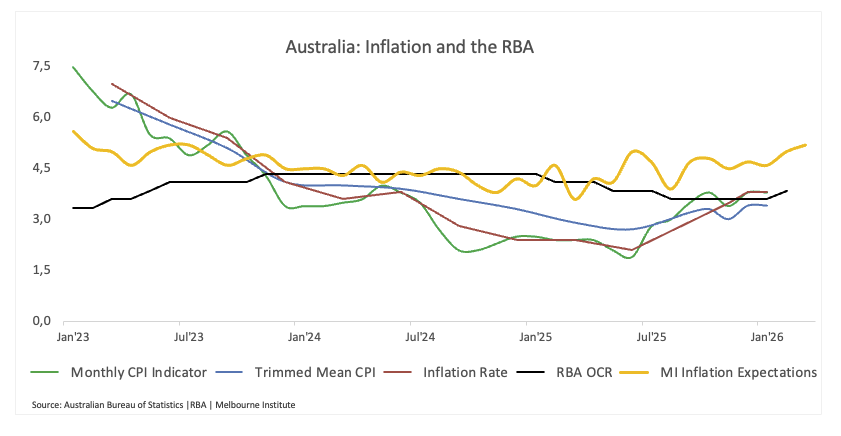 Nói vậy, chỉ số giá tiêu dùng (CPI) chính tháng 1 giữ ở mức 3,8% so với cùng kỳ năm trước, cao hơn một chút so với kỳ vọng, trong khi chỉ số Trimmed Mean tăng nhẹ lên 3,4% so với cùng kỳ năm trước. Hướng đi tổng thể vẫn là giảm, nhưng tốc độ giảm lạm phát đang chứng tỏ chậm hơn so với những gì các nhà hoạch định chính sách mong muốn.