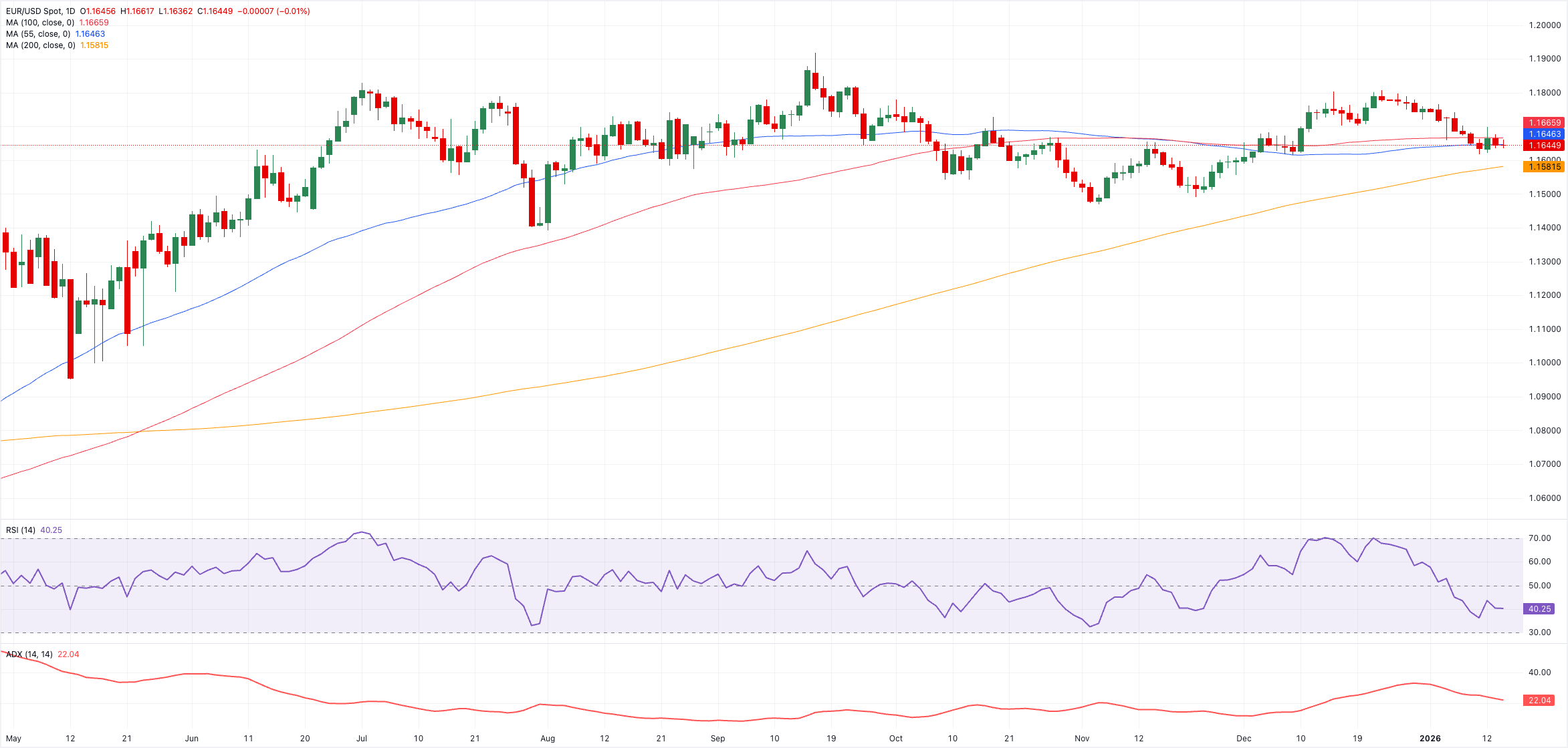 Việc mất mức đáy 2025 tại 1,1618 (ngày 9 tháng 1) có thể mở ra cơ hội cho một đợt hồi phục tiềm năng về phía đường SMA 200 ngày tại 1,1575 trước mức đáy tháng 11 tại 1,1468 (ngày 5 tháng 11) và mức đáy tháng 8 tại 1,1391 (ngày 1 tháng 8).