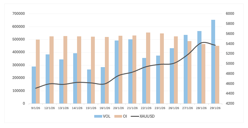 Giá vàng đã tăng rất nhiều trong nửa cuối tháng Giêng. Thực tế, kim loại màu vàng đã tăng tốc gần mức giữa 5.400$ trước khi cho thấy dấu hiệu mệt mỏi. Sự bùng nổ này đi kèm với sự gia tăng đáng kể về khối lượng giao dịch, cho thấy rằng nhiều người đã mua và bán khi giá tăng.