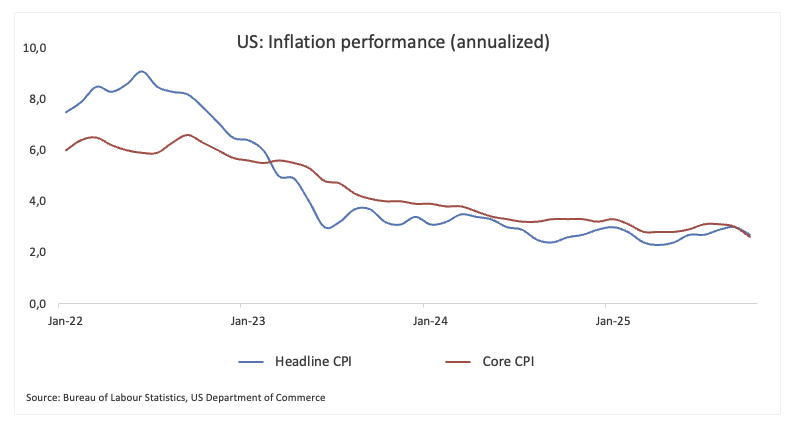 Dữ liệu lạm phát mới nhất của Mỹ cho thấy cả Chỉ số giá tiêu dùng (CPI) chính và CPI lõi đều tăng lần lượt 2,7% và 2,6% trong năm đến tháng 12, cả hai chỉ số đều khớp với mức tăng của tháng trước.