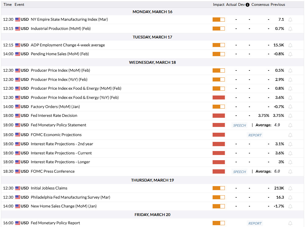 Lịch kinh tế Mỹ sẽ có Chỉ số sản xuất Empire State của New York và dữ liệu Sản xuất công nghiệp tháng Hai vào thứ Hai. Các nhà đầu tư có khả năng sẽ bỏ qua những con số này trước cuộc họp chính sách kéo dài hai ngày của Fed bắt đầu vào thứ Ba.