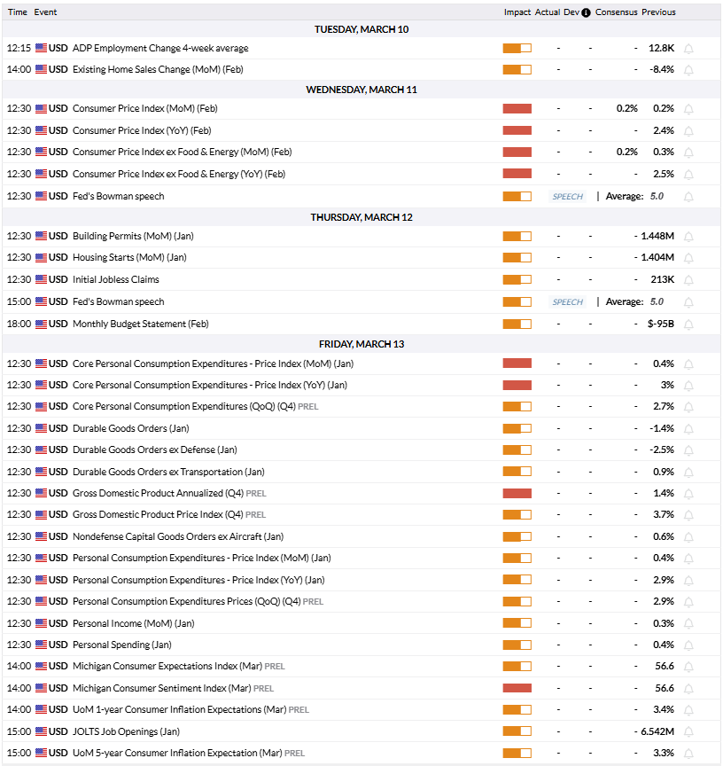 Lịch kinh tế của Mỹ sẽ có dữ liệu Chỉ số giá tiêu dùng (CPI) cho tháng 2 vào thứ Tư và dữ liệu Chỉ số giá chi tiêu tiêu dùng cá nhân (PCE) cho tháng 1 vào thứ Sáu. Những công bố này có thể kích hoạt phản ứng của thị trường, nhưng có khả năng sẽ chỉ tồn tại ngắn hạn. Một mức tăng mạnh hơn dự kiến trong CPI cốt lõi hàng tháng và Chỉ số giá PCE cốt lõi có thể hỗ trợ USD, trong khi các số liệu yếu có thể có tác động ngược lại đến hiệu suất của đồng tiền và giúp XAU/USD phục hồi.