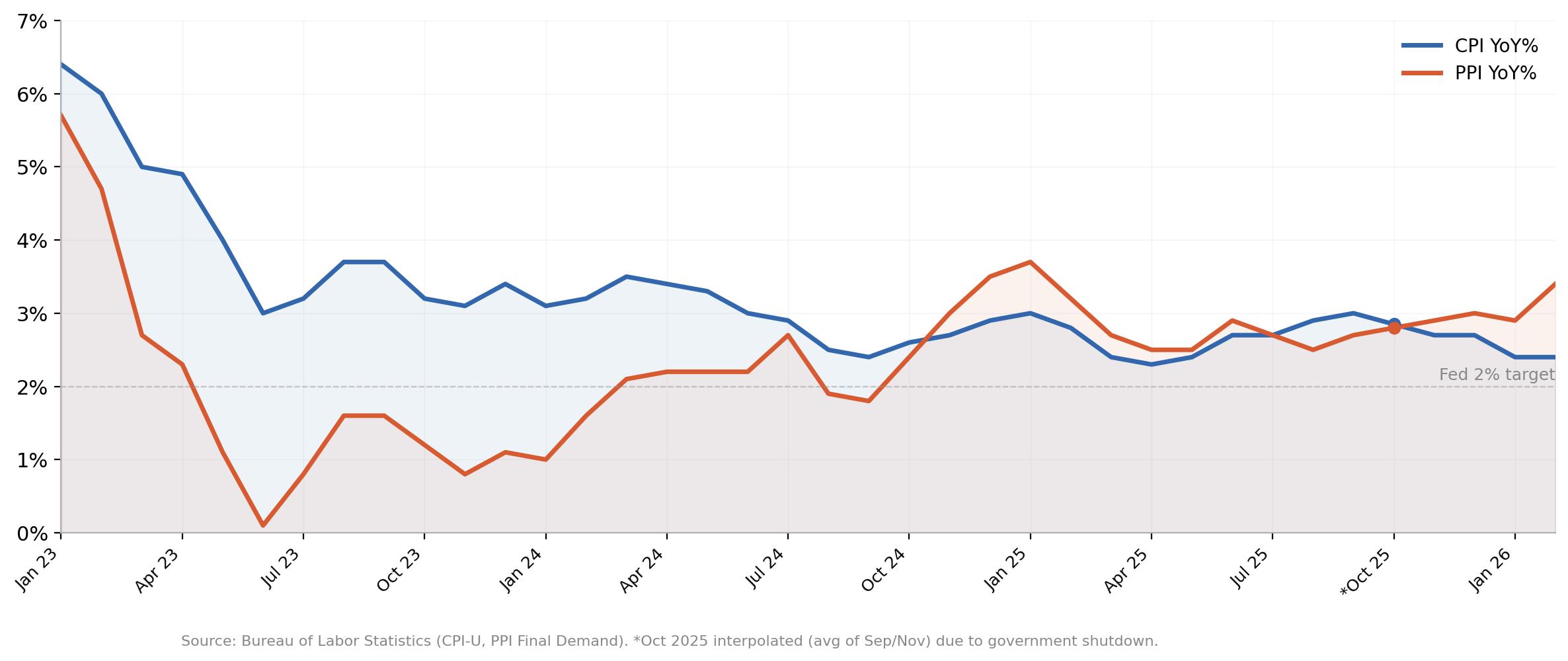 Thành tích bốn năm sau đại dịch, nếu xét riêng, sẽ gợi ý sự thận trọng khi đọc quá nhiều vào khoảng cách PPI-CPI. Đường ống bị rò rỉ vào năm 2023 vì chi phí nhà ở giữ CPI ở mức cao trong khi PPI sụt giảm. Nó không liên quan vào năm 2024 vì cả hai chỉ số hội tụ. Trong điều kiện bình thường, sự khác biệt hiện tại có thể chỉ phản ánh sự nén biên lợi nhuận tạm thời mà doanh nghiệp hấp thụ mà không tăng giá tiêu dùng.