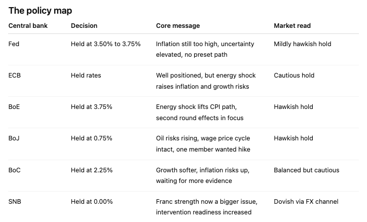 Các cuộc họp của ngân hàng trung ương trong tuần này đã đưa ra những quyết định quen thuộc nhưng với một giọng điệu bất an hơn. Bối cảnh không hoàn toàn nghiêng về diều hâu, nhưng cũng không phải là ôn hòa. Tóm lại, lãi suất ổn định, nhưng ít có sự đảm bảo. Những điểm chính rút ra cho thị trường ngoại hối là gì?