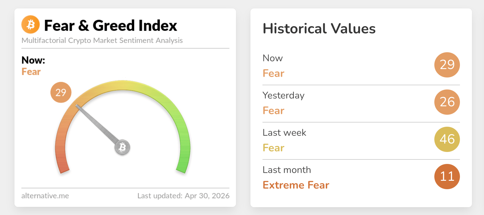 Tác động của lập trường diều hâu của Fed dường như đang đè nặng lên thị trường tiền điện tử, thể hiện qua Chỉ số Sợ hãi & Tham lam duy trì ở mức 29, gần cuối vùng sợ hãi thấp, giảm so với mức trung bình 46 của tuần trước.