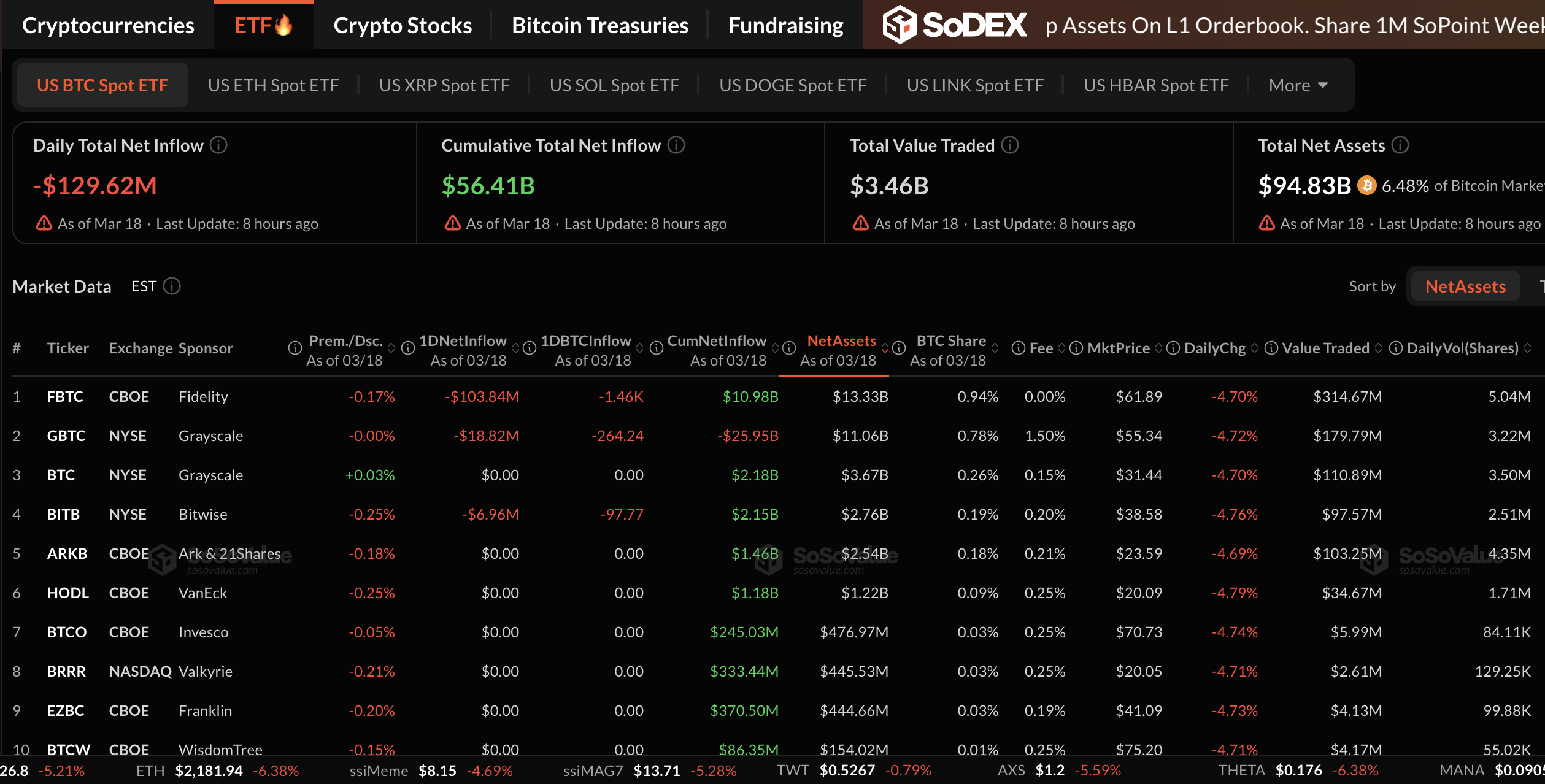Quỹ giao dịch trên sàn (ETF) là một phương tiện đầu tư hoặc một chỉ số theo dõi giá của một tài sản cơ bản. ETF không chỉ có thể theo dõi một tài sản duy nhất mà còn theo dõi một nhóm tài sản và lĩnh vực. Ví dụ, một ETF Bitcoin theo dõi giá Bitcoin. ETF là một công cụ được các nhà đầu tư sử dụng để tiếp cận một tài sản nhất định.