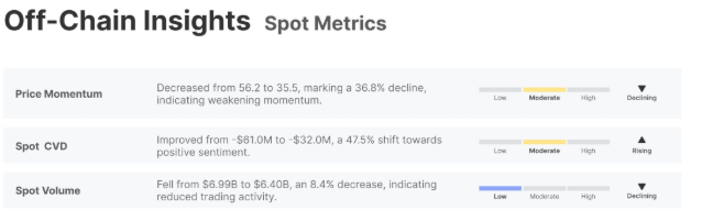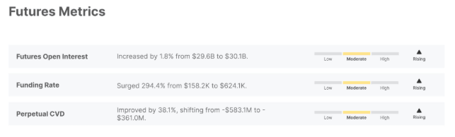 Báo cáo giải thích thêm rằng thị trường giao ngay phản ánh xu hướng hạ nhiệt này, với khối lượng giao dịch giảm và hoạt động vẫn ở mức thấp. Về phía thị trường phái sinh, vị thế cho thấy một bối cảnh cân bằng hơn nhưng thận trọng. Lãi suất mở (OI) của hợp đồng tương lai tăng nhẹ, trong khi lãi suất tài trợ tăng, cho thấy xu hướng nghiêng về vị thế mua, như được hiển thị trong biểu đồ bên dưới.
