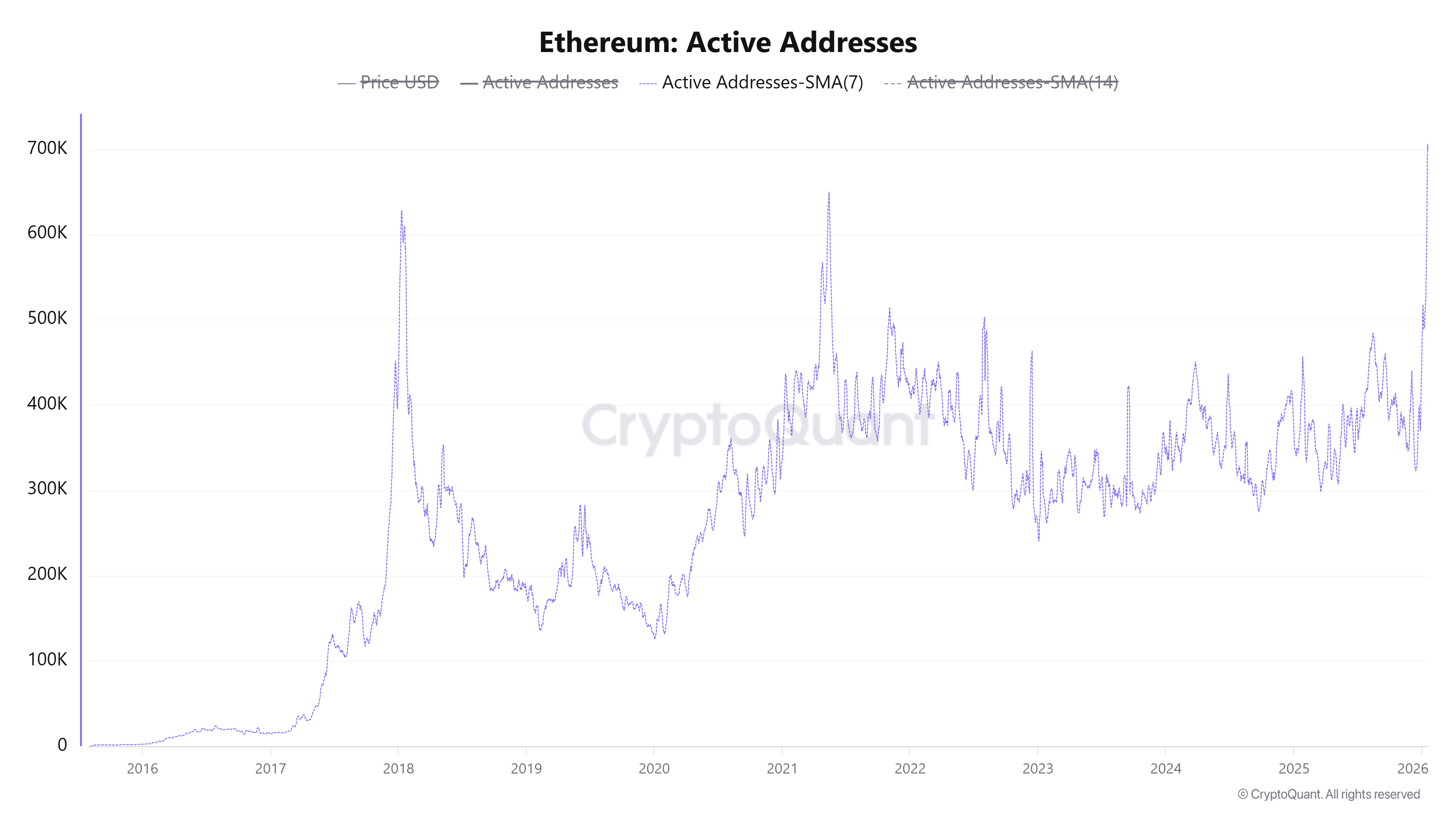 Tâm lý trái chiều giữa các nhà đầu tư diễn ra trong bối cảnh hoạt động mạng lưới Ethereum liên tục tăng. Cuối tuần qua, số lượng địa chỉ hoạt động hàng tuần trên mạng lưới đã tăng vọt từ mức được báo cáo trước đó lên mức cao kỷ lục mới trên 706.000, vượt qua mức cao nhất hồi tháng 5 năm 2021. Tương tự, số lượng giao dịch hàng ngày cũng tăng vọt lên mức cao kỷ lục mới.