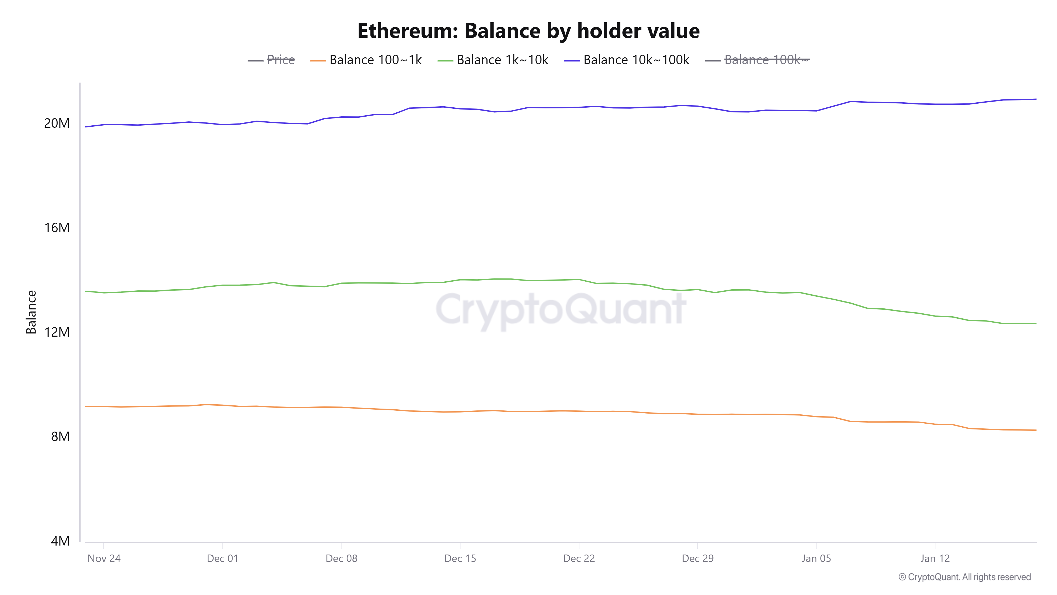 Hoạt động trên chuỗi của Ethereum (ETH) trong tuần qua có nhiều biến động. Trong khi các nhà đầu tư lớn tích lũy giữa bối cảnh hoạt động mạng tăng mạnh, các nhà đầu tư nhỏ lẻ lại phân phối khi căng thẳng địa chính trị leo thang về Greenland cuối cùng đã kéo giá xuống.