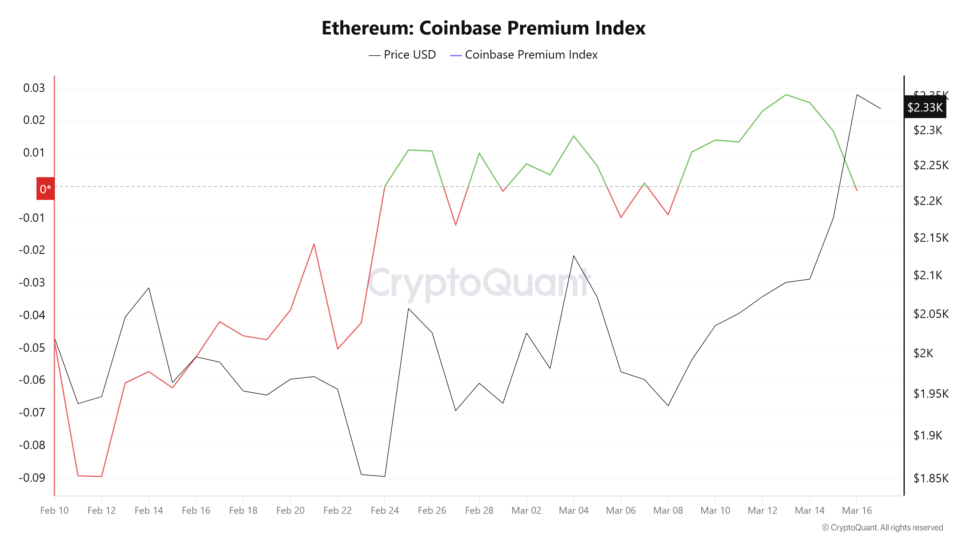 Mặc dù có sự quan tâm tích cực trên các chỉ số chính, chỉ số ETH Coinbase Premium Index, đo lường tâm lý của các nhà giao dịch Mỹ, đã chuyển sang tiêu cực, một sự sai lệch chỉ xảy ra thỉnh thoảng. Động thái này cho thấy ETH đang bất chấp hoạt động mua yếu từ các nhà đầu tư Mỹ trên Coinbase.