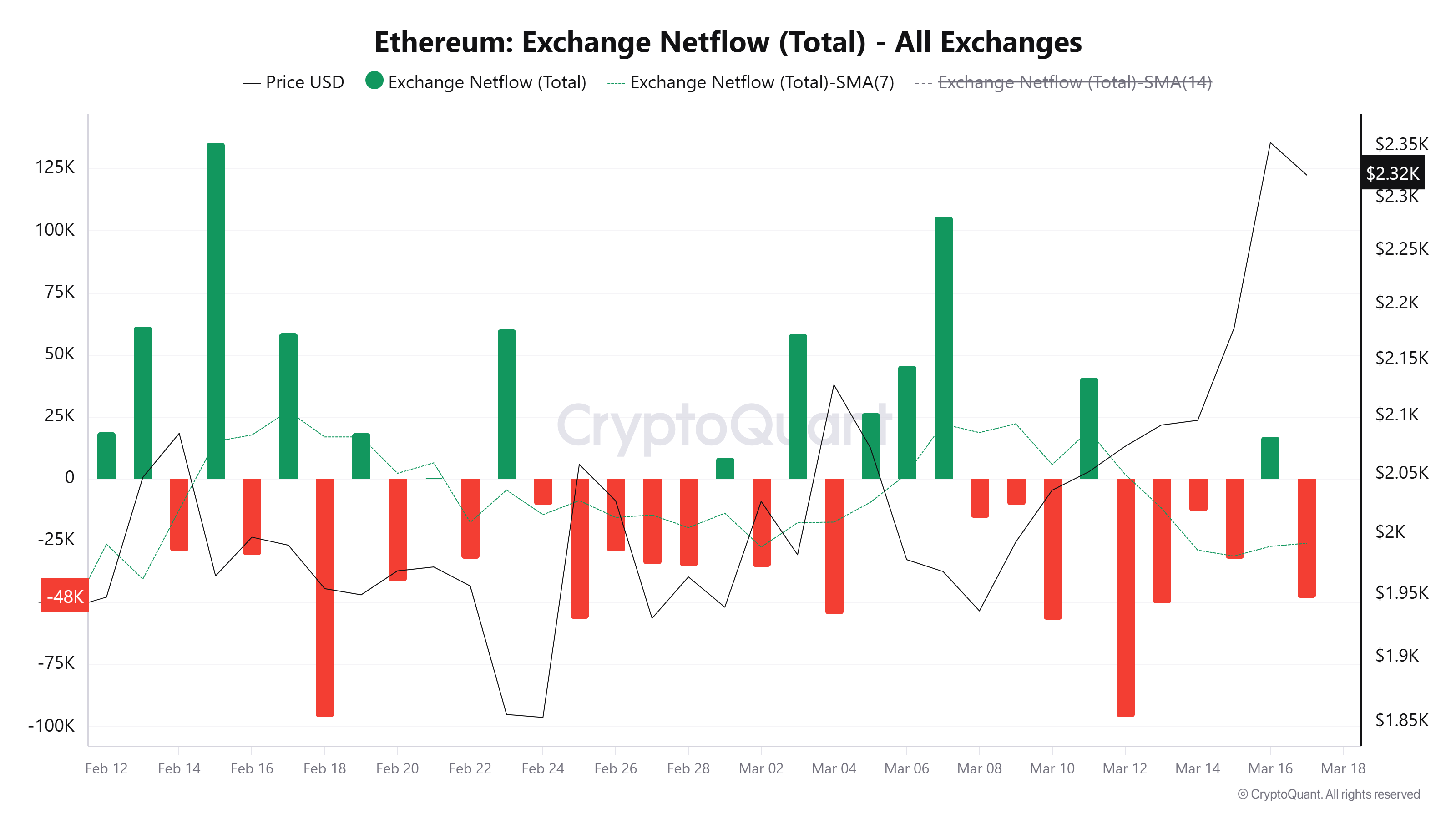 Chỉ số Exchange Netflow, đo lường sự khác biệt giữa lượng tiền điện tử chảy vào và ra khỏi các sàn giao dịch, cho thấy dòng tiền chảy ra chiếm ưu thế trong những tuần gần đây, cho thấy áp lực mua đang gia tăng.