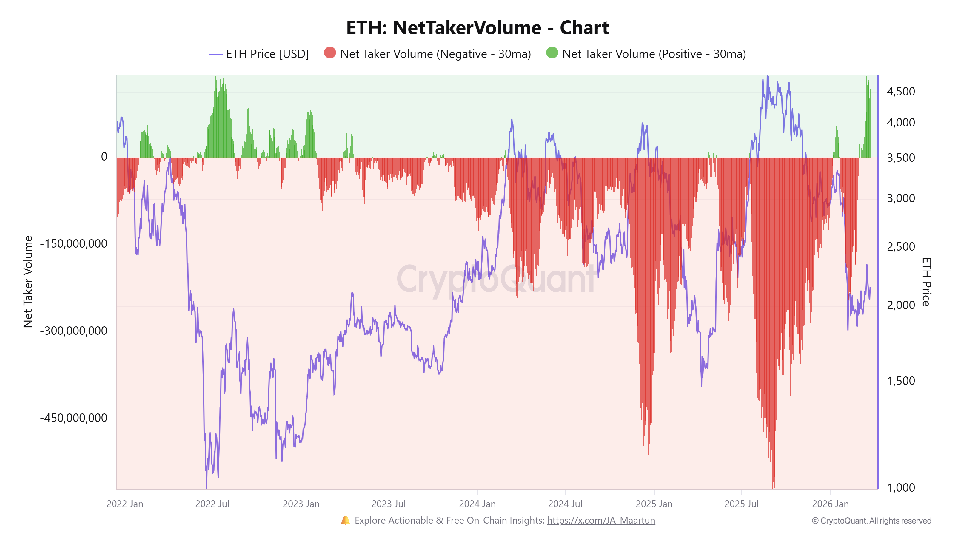 Tương tự, các nhà đầu tư mua vào (taker) hoặc các nhà đầu tư thực hiện giao dịch bằng lệnh thị trường đang có xu hướng tăng giá, với Khối lượng mua ròng (Net Taker Volume) trên hợp đồng tương lai ETH đạt +133 triệu đô la trong vài ngày qua.