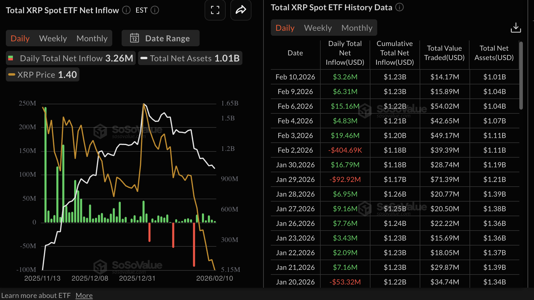 Trong khi đó, sự quan tâm của các tổ chức đối với XRP vẫn ổn định, mặc dù dòng vốn chảy vào các quỹ ETF XRP giao ngay ở mức vừa phải. Trong năm ngày liên tiếp, các quỹ ETF XRP niêm yết tại Mỹ đã ghi nhận dòng vốn chảy vào, với 3,26 triệu đô la được gửi vào thứ Ba.