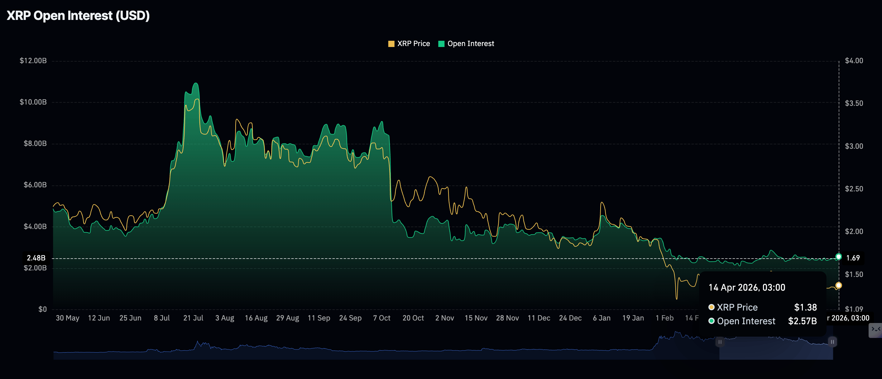 XRP cũng đang chứng kiến dòng vốn bán lẻ nhẹ, khi Open Interest hợp đồng tương lai tăng lên 2,57 tỷ $ vào thứ Ba, từ 2,38 tỷ $ ngày trước đó.