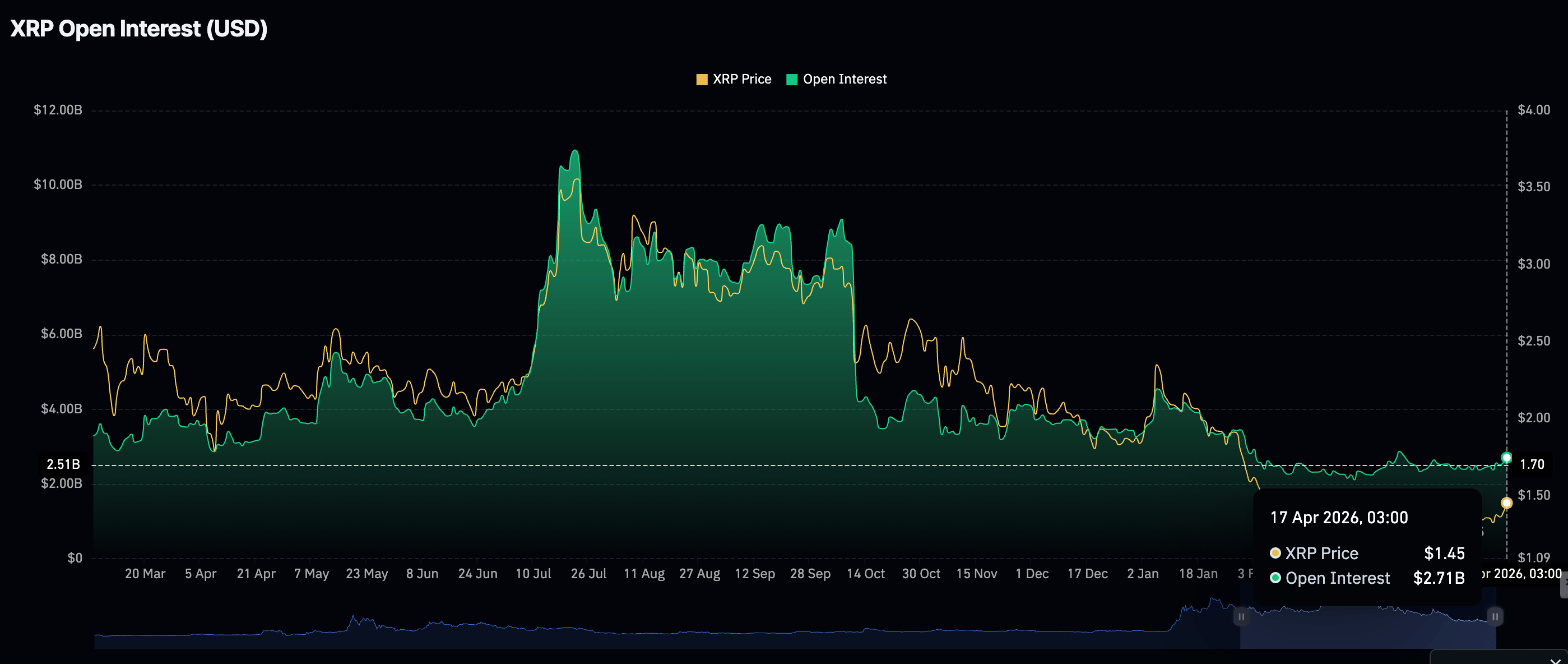 Thị trường phái sinh XRP đang thu hút sự chú ý khi Open Interest (OI), phản ánh giá trị danh nghĩa của các hợp đồng tương lai và quyền chọn còn tồn đọng, tăng lên 2,71 tỷ đô la vào thứ Sáu từ 2,58 tỷ đô la ngày trước đó.