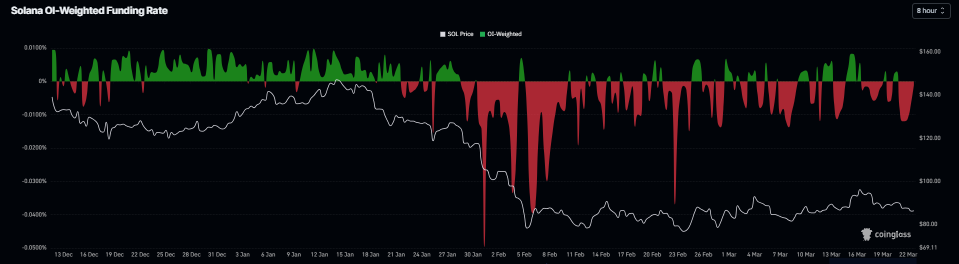 Ngoài ra, dữ liệu về lãi suất cho vay của CoinGlass cũng hỗ trợ tâm lý tiêu cực. Chỉ số này đã chuyển sang mức âm vào thứ Bảy và ở mức -0,0011% vào thứ Hai, cho thấy các lệnh bán đang trả tiền cho các lệnh mua và gợi ý tâm lý giảm giá đối với SOL.