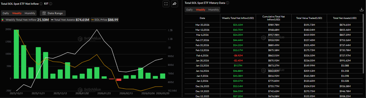 Bất chấp các cuộc xung đột đang diễn ra, nhu cầu của các tổ chức đối với Solana vẫn mạnh mẽ trong tuần trước. SoSoValue ghi nhận dòng vốn chảy vào 21,10 triệu đô la trong tuần trước, đánh dấu tuần thứ sáu liên tiếp có dòng vốn tích cực. Tuy nhiên, nếu những dòng vốn này chuyển sang tiêu cực trong bối cảnh chiến tranh Trung Đông trong tuần này, giá SOL có thể điều chỉnh giảm thêm.