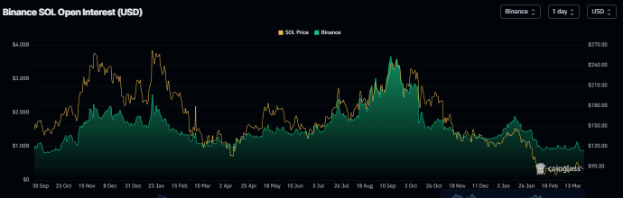 Về phía thị trường phái sinh, dữ liệu hỗ trợ triển vọng giảm giá đối với Solana. Lượng hợp đồng mở (OI) của SOL trên sàn Binance đã giảm xuống còn 871,40 triệu USD vào thứ Hai và liên tục giảm kể từ giữa tháng Giêng. Sự sụt giảm OI này phản ánh sự suy giảm tham gia của nhà đầu tư và dự báo triển vọng giảm giá.