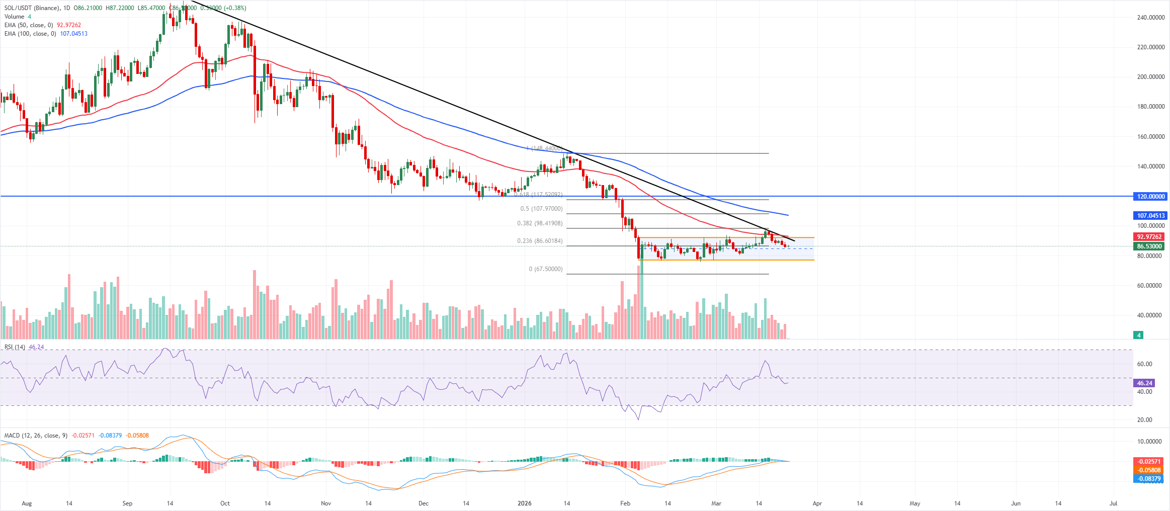 Giá Solana giao dịch ở mức 86,50 USD tính đến thời điểm viết bài vào thứ Hai sau khi giảm gần 7% trong tuần trước. Xu hướng ngắn hạn là giảm giá thận trọng khi SOL trượt trở lại kênh song song sau khi giữ vững trên ranh giới kênh trên ở mức 92,80 USD trong tuần trước.
