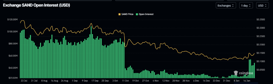 - Dữ liệu về chuỗi và các công cụ phái sinh cho thấy bức tranh tăng giá, với việc các nhà đầu tư lớn (cá voi) tích lũy SAND và khối lượng giao dịch mở (OI) tăng lên.