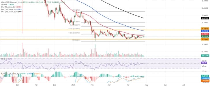 Cardano (ADA) tiếp tục đà phục hồi, tiến gần đến ngưỡng kháng cự quan trọng ở mức 0,258 đô la vào thứ Hai, nơi một sự phá vỡ quyết định có thể mở ra cánh cửa cho những đợt tăng giá tiếp theo. Mặc dù dữ liệu phái sinh phản ánh tâm lý giao dịch trái chiều, nhưng sự thay đổi gần đây về lãi suất tài trợ và vị thế trung lập trên thị trường giao ngay và hợp đồng tương lai cho thấy sự lạc quan thận trọng đang bắt đầu hình thành.