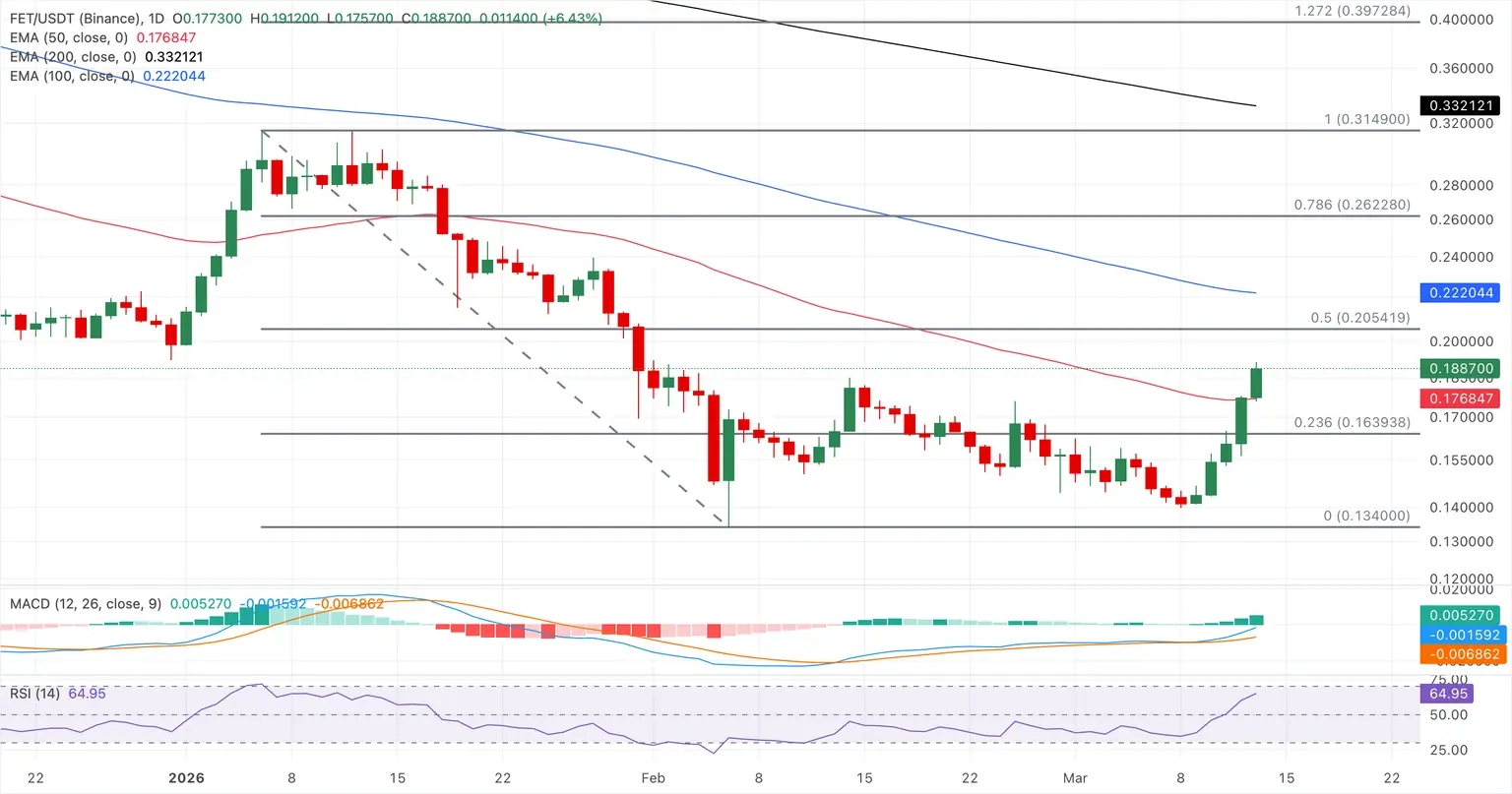 Các token Trí tuệ Nhân tạo (AI) trên thị trường tiền điện tử đã phục hồi mạnh mẽ trong tuần này, chủ yếu được thúc đẩy bởi Artificial Superintelligence Alliance (FET), Render (RENDER) và Bittensor (TAO). Nhu cầu mới đối với các token AI này phù hợp với sự trỗi dậy của các hệ thống dựa trên tác nhân trên toàn thế giới, bao gồm cả cơn sốt OpenClaw ở Trung Quốc và các mô hình dựa trên tác nhân mới từ Anthropic, Google và OpenAI. Triển vọng kỹ thuật đối với FET, RENDER và TAO khá lạc quan khi thị trường tiền điện tử nói chung vẫn ổn định trong bối cảnh chiến tranh Mỹ-Iran và nhu cầu AI ngày càng tăng.