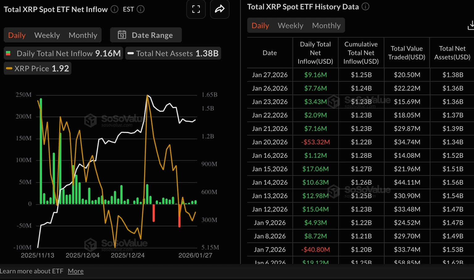 Ripple (XRP) đang giao dịch ở mức 1,92 đô la vào thời điểm viết bài này vào thứ Tư, và đang củng cố trên mức hỗ trợ 1,90 đô la. Phe mua đã thể hiện sức mạnh tương đối kể từ thứ Hai, đẩy giá XRP tăng từ mức mở cửa hàng tuần là 1,84 đô la.