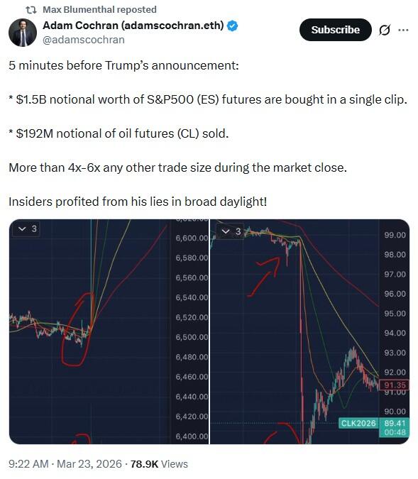 Tương tự như lần trước, có nhiều tin đồn rằng các vị thế lớn đã được thiết lập trên thị trường trong vài phút trước khi Trump phát hành tuyên bố trên Truth Social, nền tảng mạng xã hội cá nhân của ông.