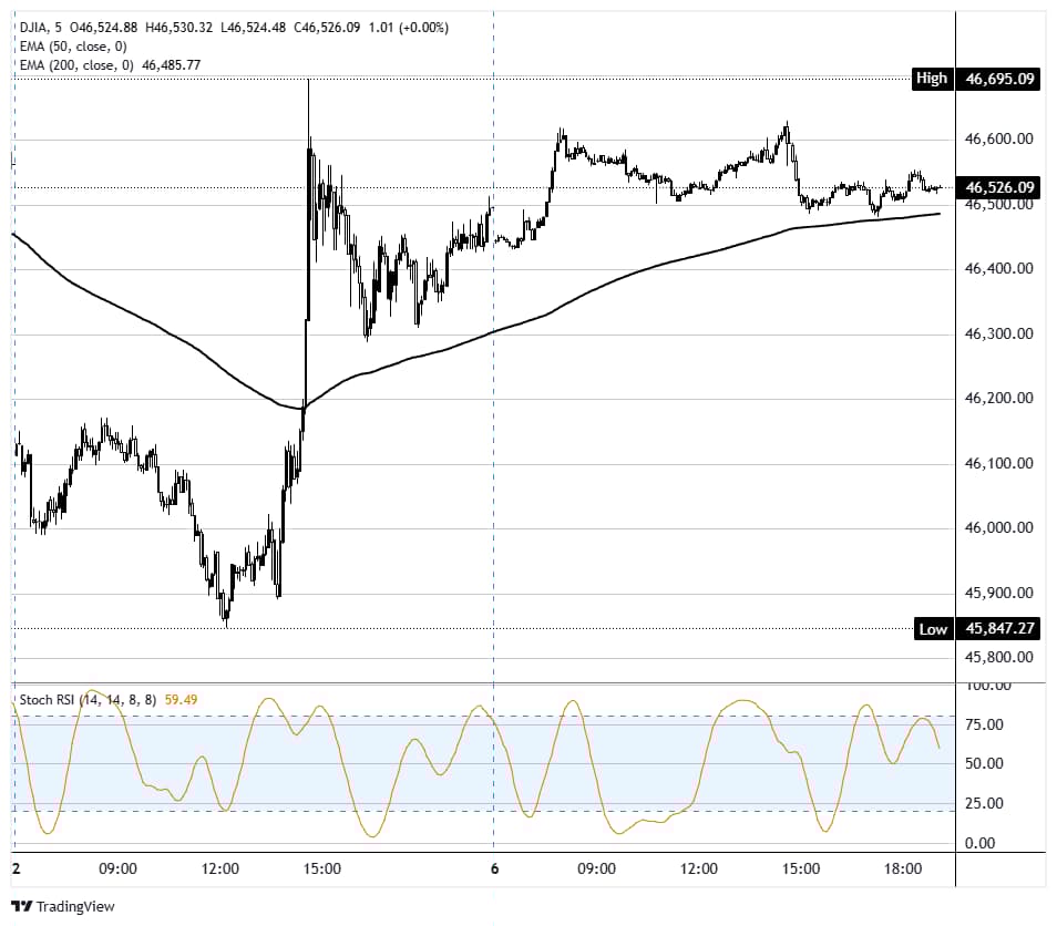 Chỉ số trung bình công nghiệp Dow Jones (DJIA) tăng nhẹ 120 điểm, tương đương 0,3%, vào thứ Hai trong phiên giao dịch đầu tiên sau kỳ nghỉ Thứ Sáu Tuần Thánh. Chỉ số này đã tiến tới mức 46.700 trong đầu phiên giao dịch trước khi giảm dần trong phiên giữa ngày và cuối cùng đóng cửa quanh mức 46.500. Chỉ số S&P 500 tăng 0,4% và Nasdaq Composite tăng 0,5%, kéo dài đà phục hồi của tuần trước với mức tăng lần lượt là 3%, 3,4% và 4,4%. Phiên giao dịch thứ Hai là cơ hội đầu tiên để các nhà giao dịch tiêu hóa báo cáo Bảng lương phi nông nghiệp (NFP) tháng Ba vượt trội vào thứ Sáu, cho thấy nền kinh tế đã tạo thêm 178 nghìn việc làm so với kỳ vọng chỉ 60 nghìn.