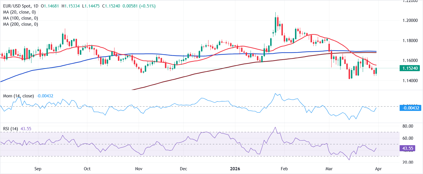 Báo cáo PMI ngành sản xuất ISM dự kiến được công bố lúc 14:00 GMT vào thứ Tư. Trước khi công bố, đồng Đô la Mỹ (USD) vẫn giữ được sức mạnh nhờ vai trò tiền tệ trú ẩn an toàn trên thị trường ngoại hối, tạm dừng đà tăng. Cặp EUR/USD giao dịch quanh mốc 1,1500, duy trì xu hướng giảm theo các chỉ báo kỹ thuật trên biểu đồ hàng ngày.