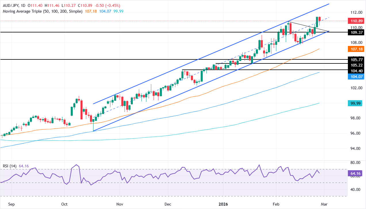 Đà tăng của AUD/JPY đã bị chặn lại vào thứ Năm khi cặp tiền tệ này rút lui khoảng 0,40% trong phiên giao dịch do sức mạnh chung của đồng Yên Nhật. Những bình luận diều hâu từ hai quan chức của Ngân hàng trung ương Nhật Bản đã đè nặng lên cặp tiền tệ này, hiện đang giao dịch dưới mức 111,00 vào thời điểm viết bài.