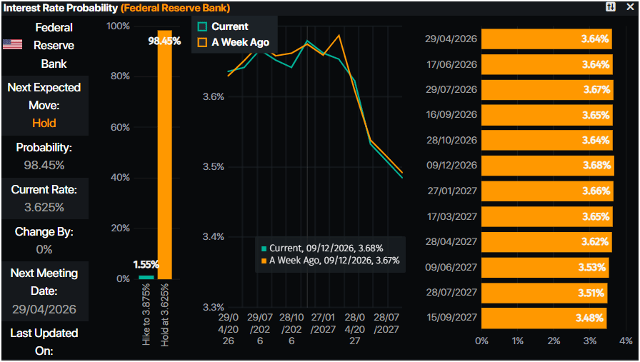 Các ngân hàng trung ương toàn cầu đã giảm bớt lo ngại về làn sóng lạm phát thứ hai xuất phát từ cú sốc năng lượng liên quan đến xung đột. Trước thỏa thuận đình chiến Mỹ-Iran, thị trường tiền tệ đã kỳ vọng Cục Dự trữ Liên bang Mỹ (Fed) giữ nguyên lãi suất. Tuy nhiên, khi các cuộc đàm phán sắp bắt đầu, nhà đầu tư hiện đang định giá gần 10 điểm cơ bản nới lỏng vào cuối năm, theo Prime Market Terminal.