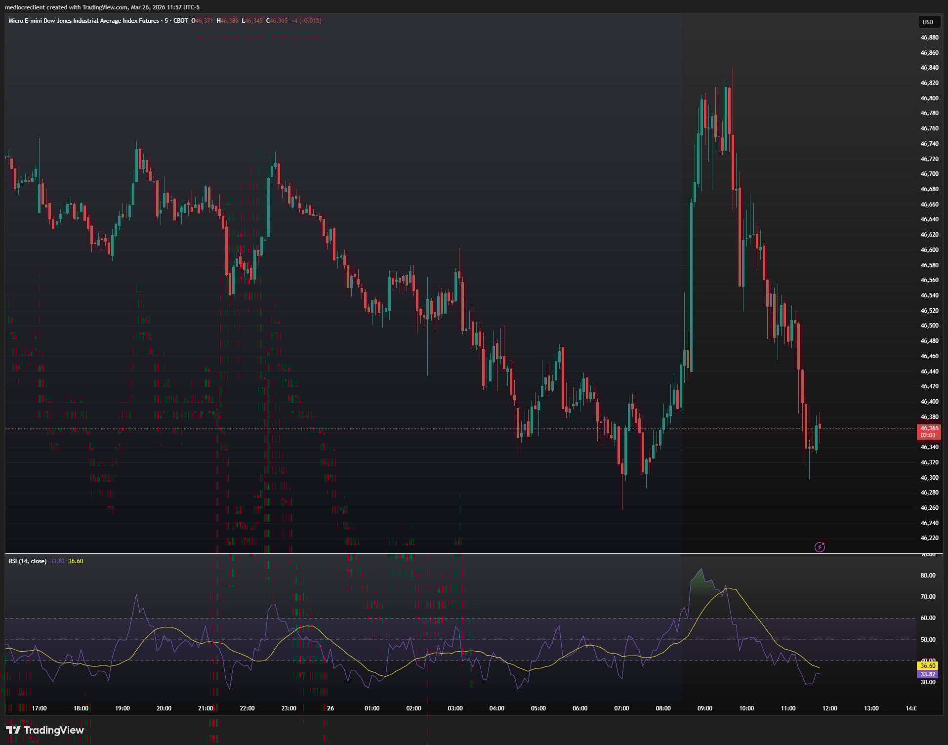 Biểu đồ 5 phút hợp đồng tương lai Dow Jones E-mini