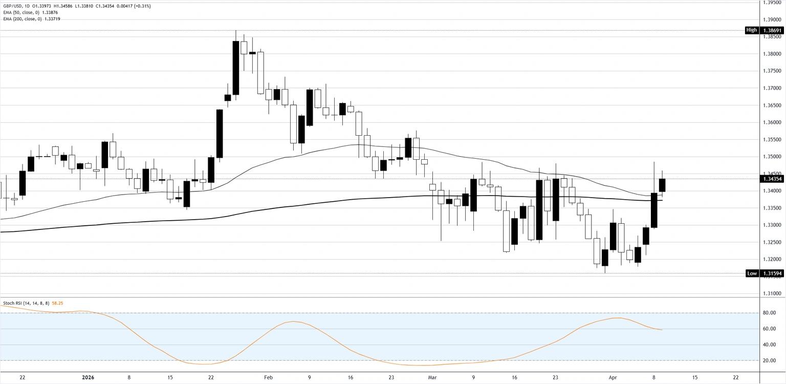 GBP/USD duy trì quan điểm tích cực, dao động quanh mức 1,3450 vào cuối tuần. Sự phục hồi liên tục của Cable vẫn được củng cố bởi đợt giảm kéo dài nhiều ngày của đồng bạc xanh, khi các nhà đầu tư tiếp tục đánh giá các diễn biến từ lệnh ngừng bắn giữa Mỹ và Iran.