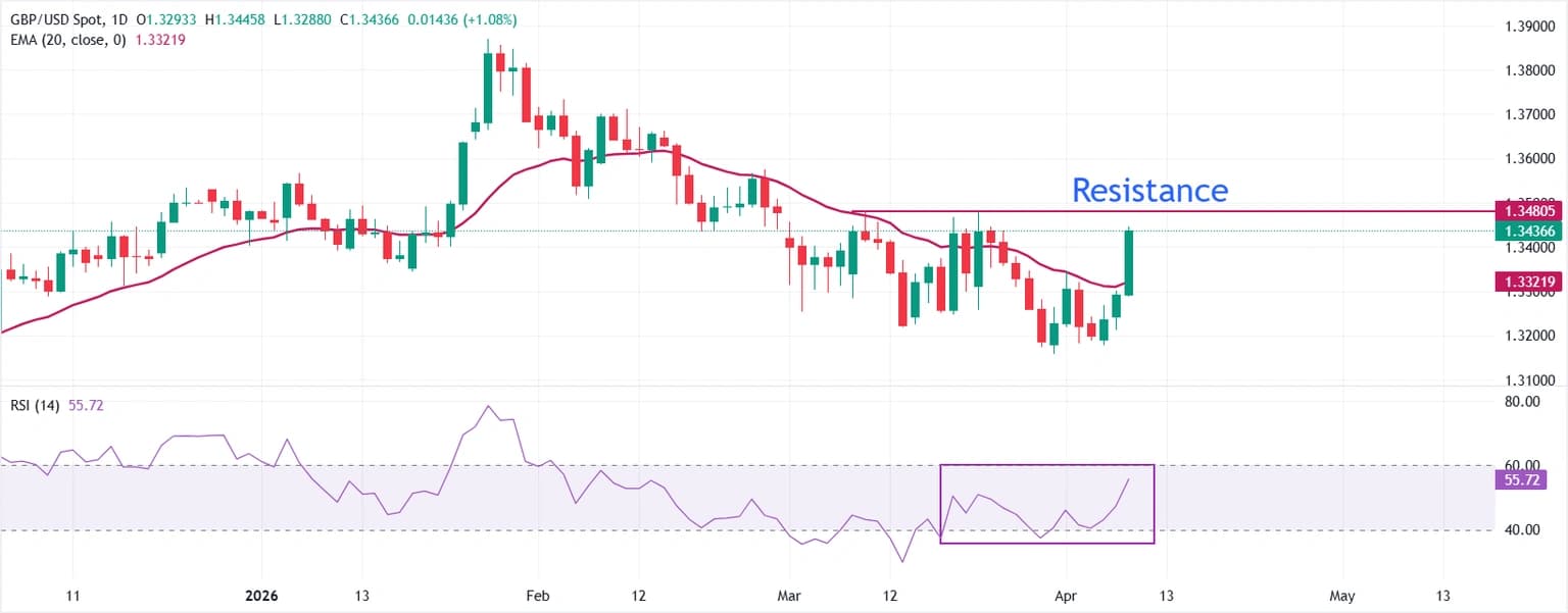 GBP/USD tăng mạnh hướng về 1,3400 khi lệnh ngừng bắn của Iran làm giảm giá đồng Đô la Mỹ