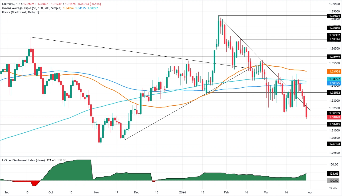 GBP/USD lao dốc xuống 1,3180 khi căng thẳng Trung Đông đẩy giá trị đồng Đô la Mỹ tăng cao
