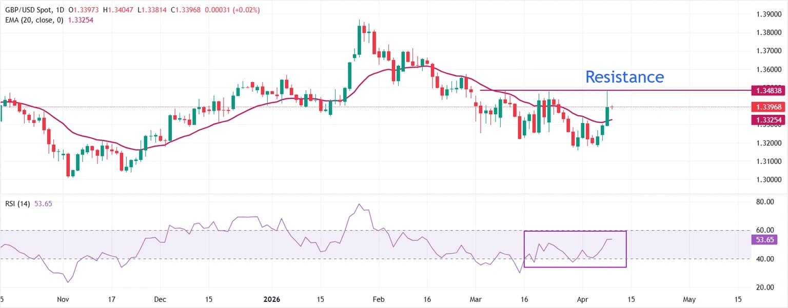 GBP/USD vượt mốc 1,3400 khi thỏa thuận ngừng bắn mong manh giữ cho đồng bảng Anh duy trì đà tăng