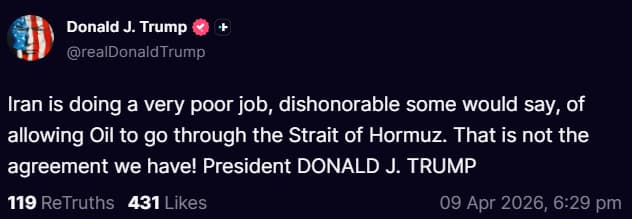 Ông Trump cho biết ông kỳ vọng Iran sẽ tuân thủ các điều khoản mà ông nói đã được nhất trí về lệnh ngừng bắn trước các cuộc đàm phán dự kiến vào cuối tuần này, đồng thời cảnh báo rằng nếu không, ông sẽ ra lệnh tấn công quy mô lớn vào nước này.