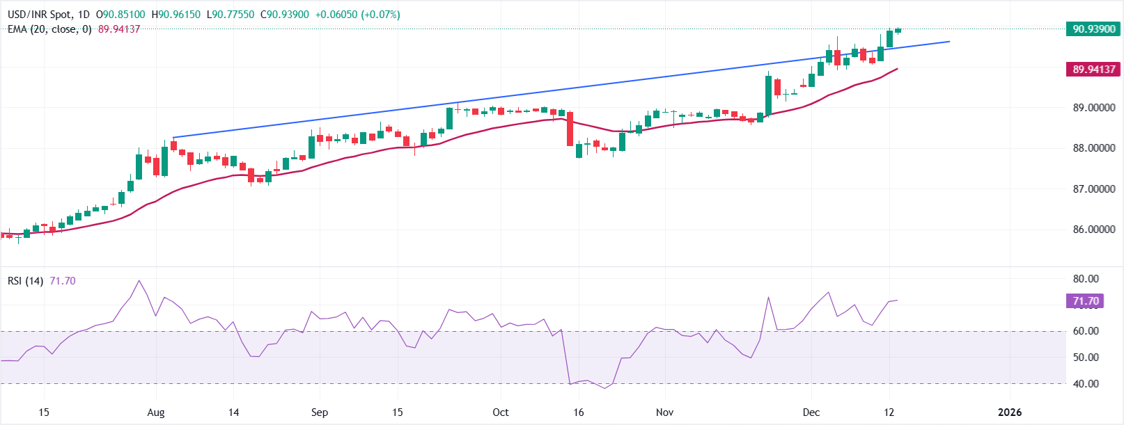 Phân tích Kỹ thuật: USD/INR tăng lên gần 91,00