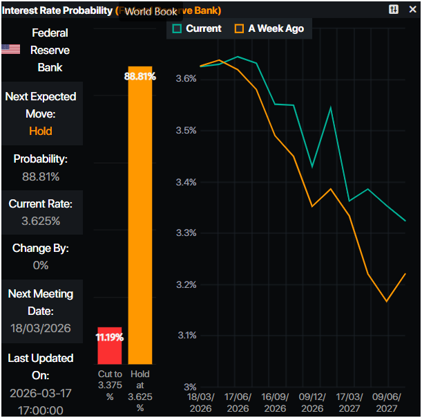 Thị trường tiền tệ kỳ vọng Fed sẽ giữ lãi suất không thay đổi trong cuộc họp tháng Ba, chỉ định giá chỉ 25 điểm cơ bản nới lỏng vào cuối năm. Sau quyết định của Fed, các nhà đầu tư sẽ chú ý đến cuộc họp báo của Chủ tịch Cục Dự trữ Liên bang Jerome Powell.