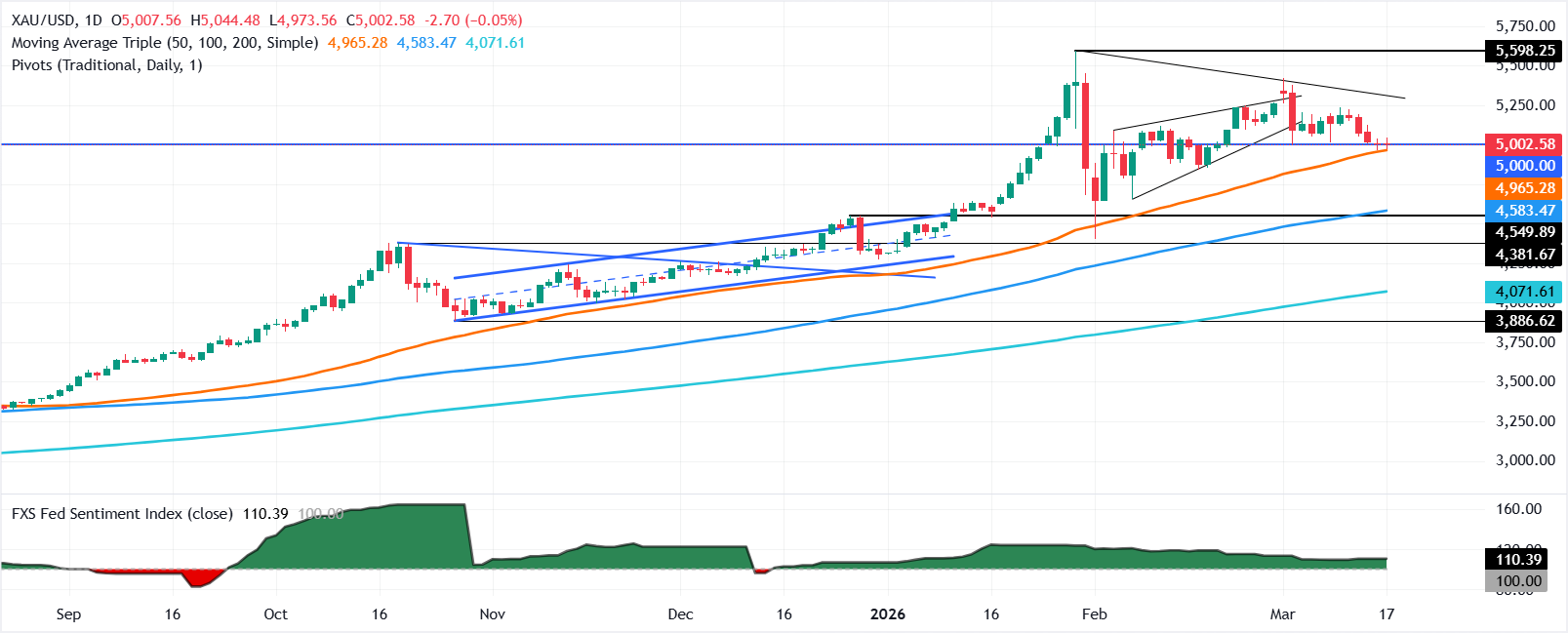 Dự báo giá XAU/USD: Vàng nghiêng xuống dưới 5.000$